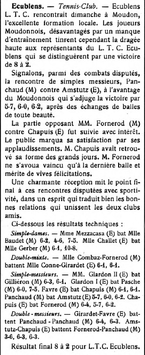 La même année, son comité paraphait une convention de bail de cinq ans avec la Commune d’Ecublens en vue de la construction d’un court de tennis. Coût : Fr. 4'000.-. Finance d’entrée: Fr. 2.- !